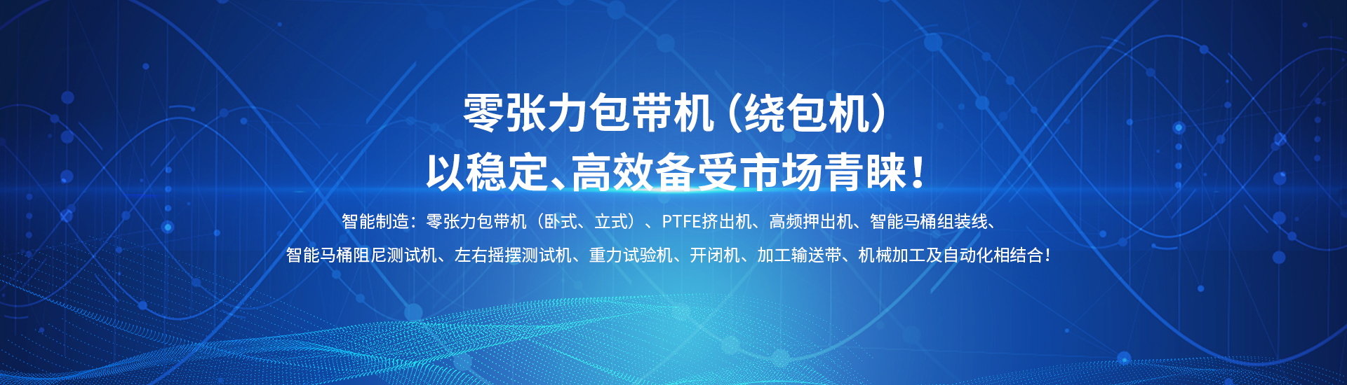 主要產(chǎn)品:押出機、包帶機、PTFE擠出機、智能電子坐便器組裝線、電子坐便器老化試驗臺、阻尼耐久試驗機…